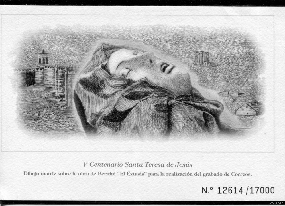 Открытка. Пятисотлетие со дня рождения святой Терезы Иисуса. Матричный рисунок по работе Бернини, для создания почтовой гравюры