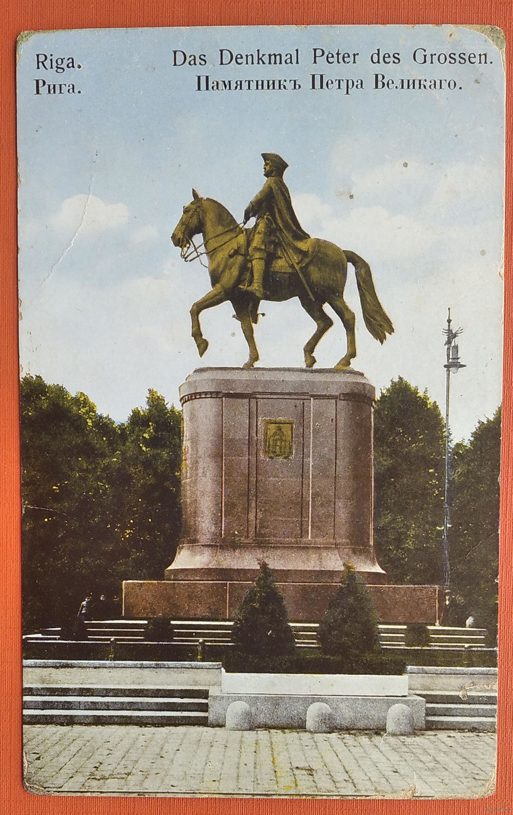 Открытка Российской Империи. Рига. Памятник Петру Первому. До 1917 года. Чистая
