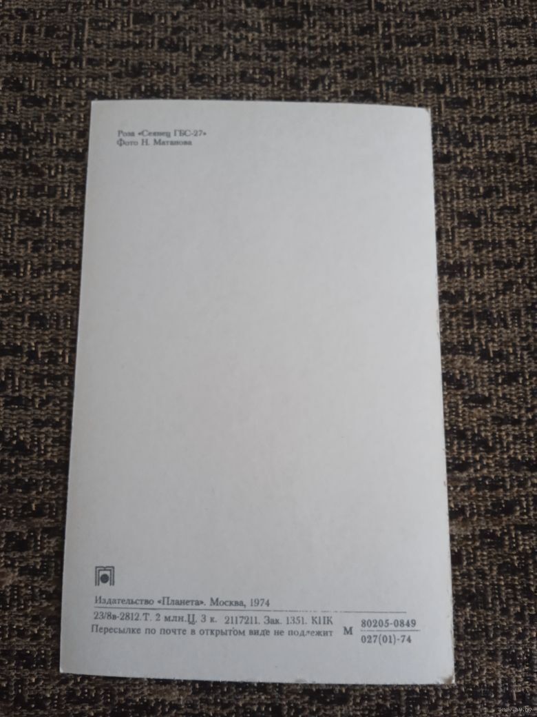 Открытка роза "сеянец гбс-27" чистая фото МАТАНОВА.1974г