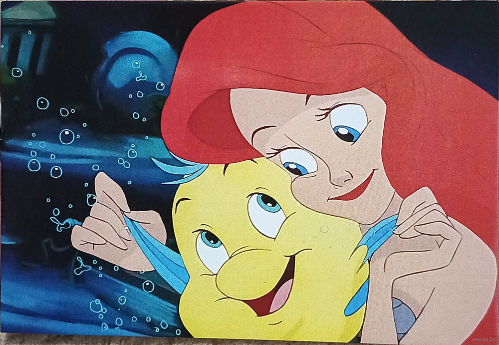 Открытка "Русалочка" мультфильм Дисней, Ариэль и Флаундер чистая