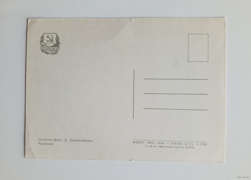 Открытка Рысёнок. Фото Д. Трахтенберга 1963 г. Чистая.