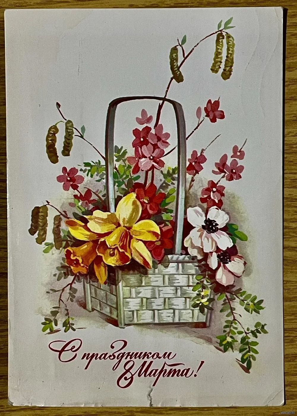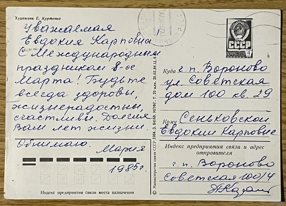 Открытка С 8 Марта. Курпенко. Прошла почту. 1984год
