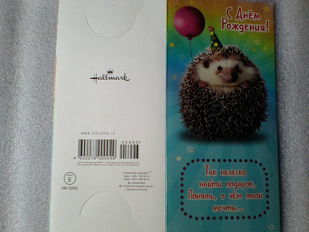 Открытка - "С Днём Рождения" - Размеры: 9,5/19,5 см.