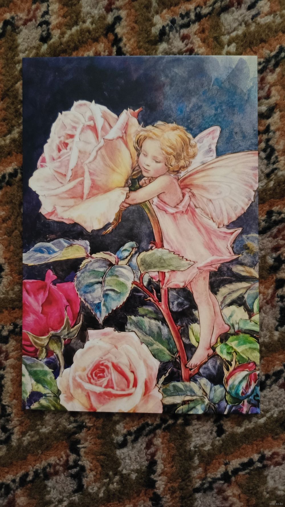 Открытка с иллюстрацией Сесиль Мэри Баркер фея, розы чистая. Живопись