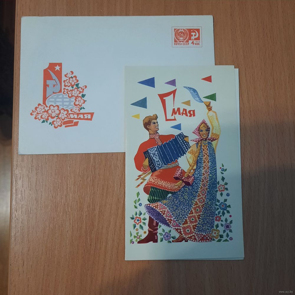 Открытка с конвертом 1 мая 1966г