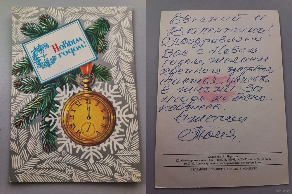 Открытка. С Новым годом ! 1986 год