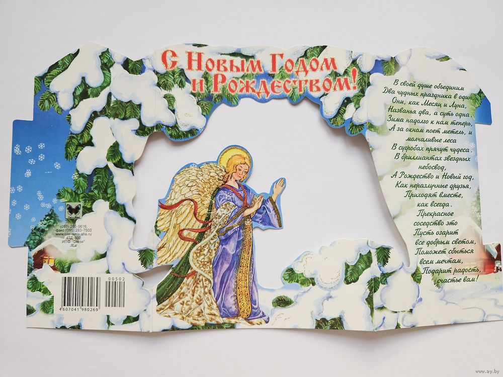 Открытка С новым годом 2000-х вырубка тройная блестки