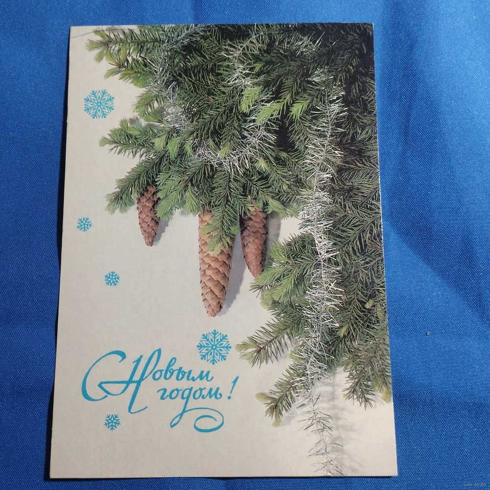 Открытка С Новым годом чистая Дергилев почтовая 1986г