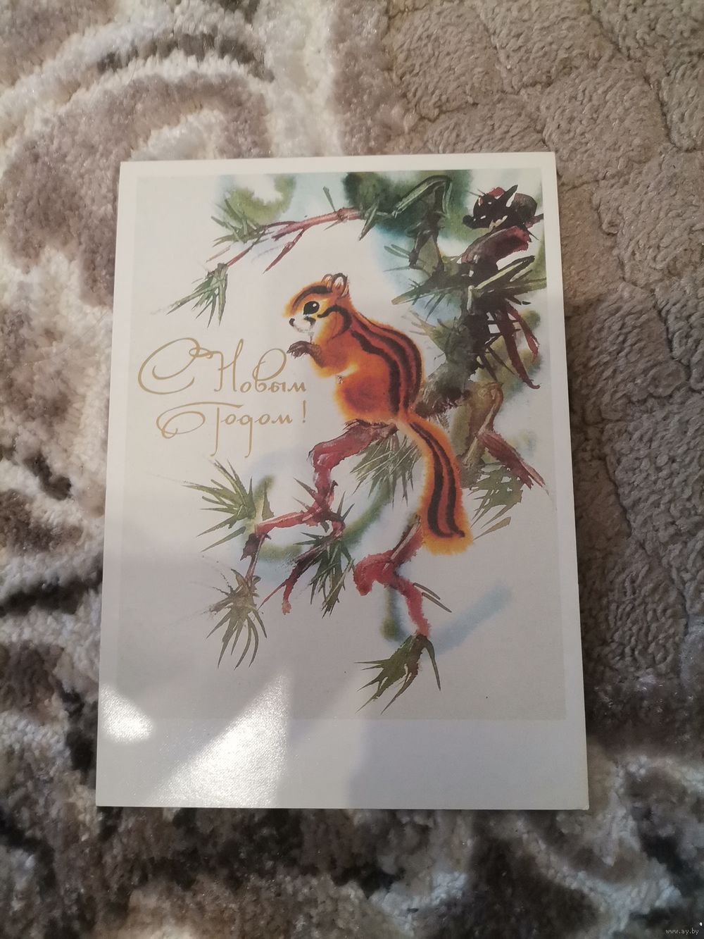ОТКРЫТКА С Новым Годом! Каневский 1988 Бурундук на ветке елка чистая