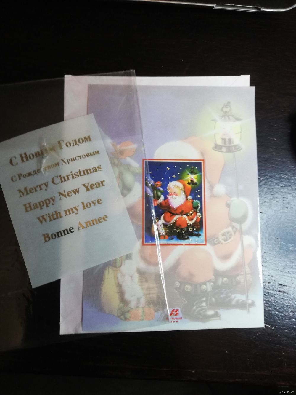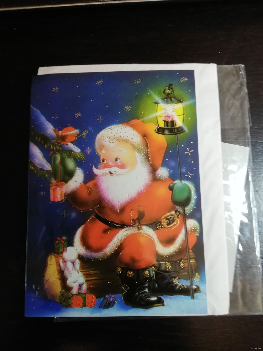 Открытка С Новым годом винтаж S. A. R двойная с конвертом и наклейками в полиэтиленовой упаковке