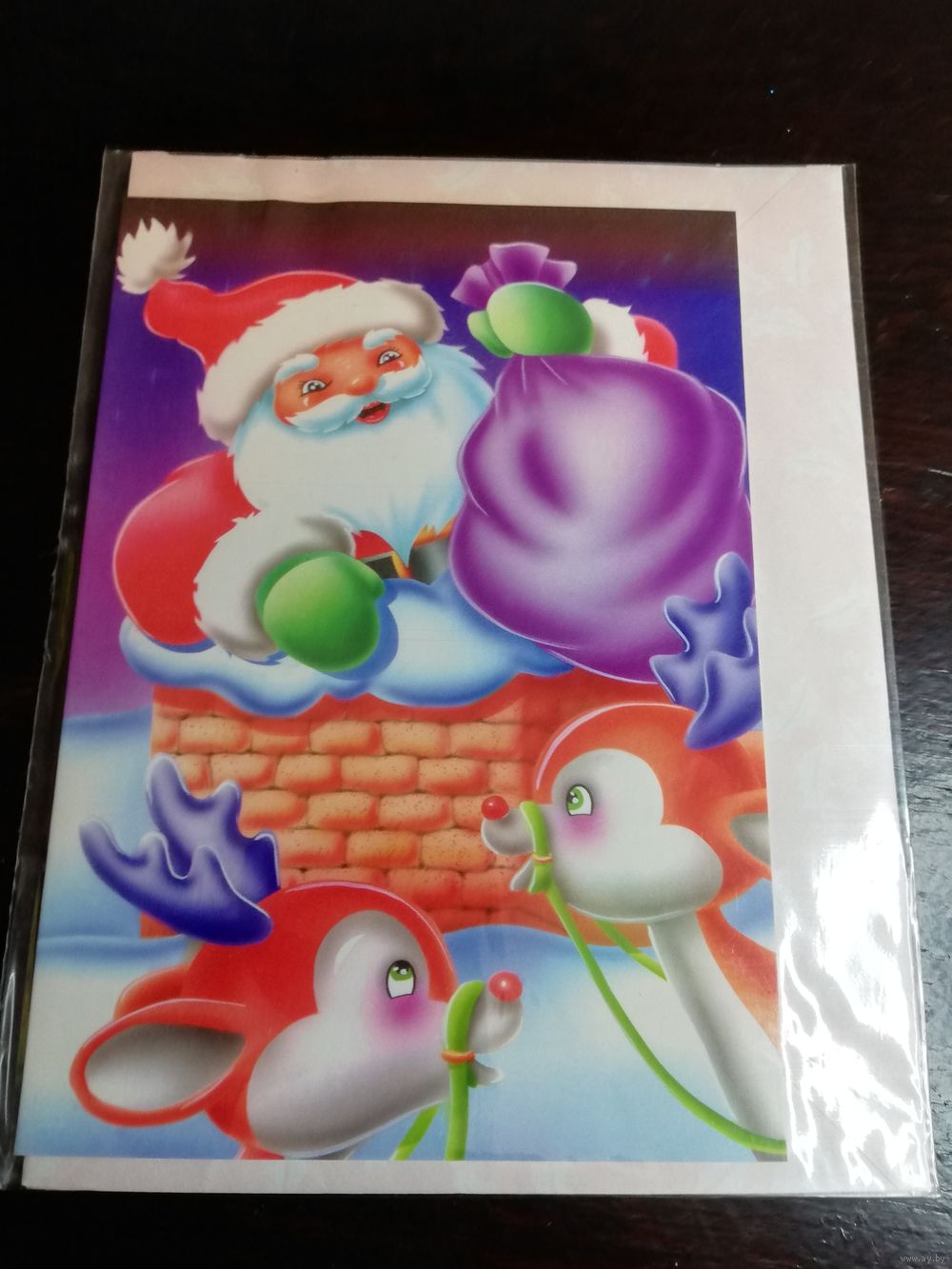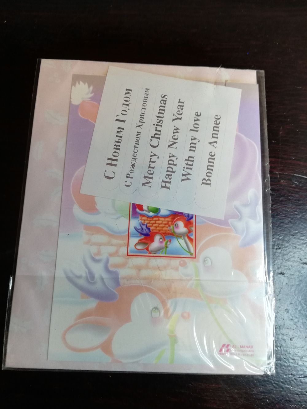 Открытка С Новым годом винтаж S. A. R. Сирия двойная с конвертом и наклейками в полиэтиленовой упаковке