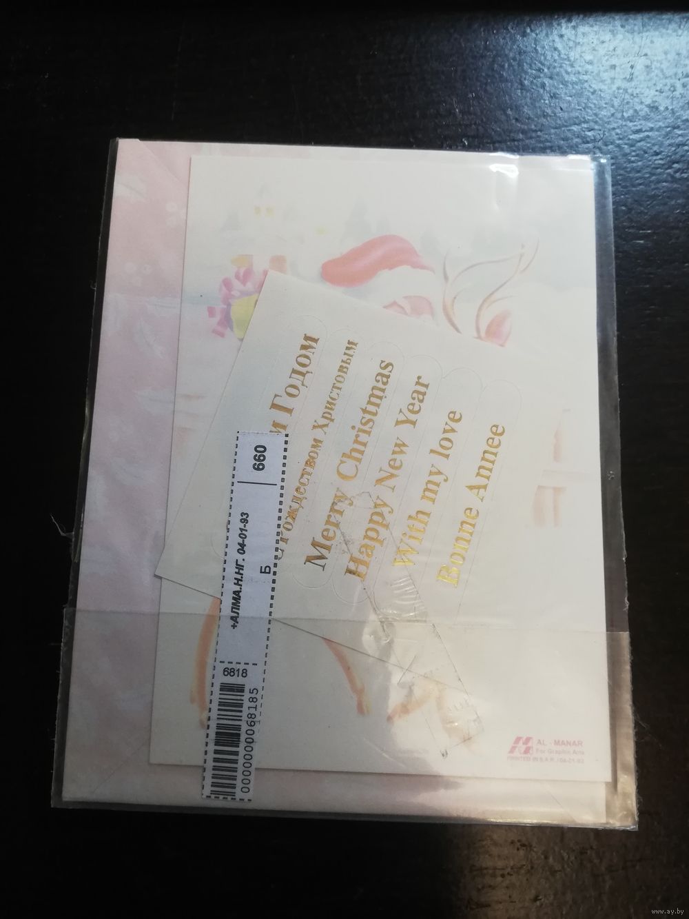 Открытка С Новым годом винтаж S. A. R Сирия с конвертом и наклейками в полиэтиленовой упаковке