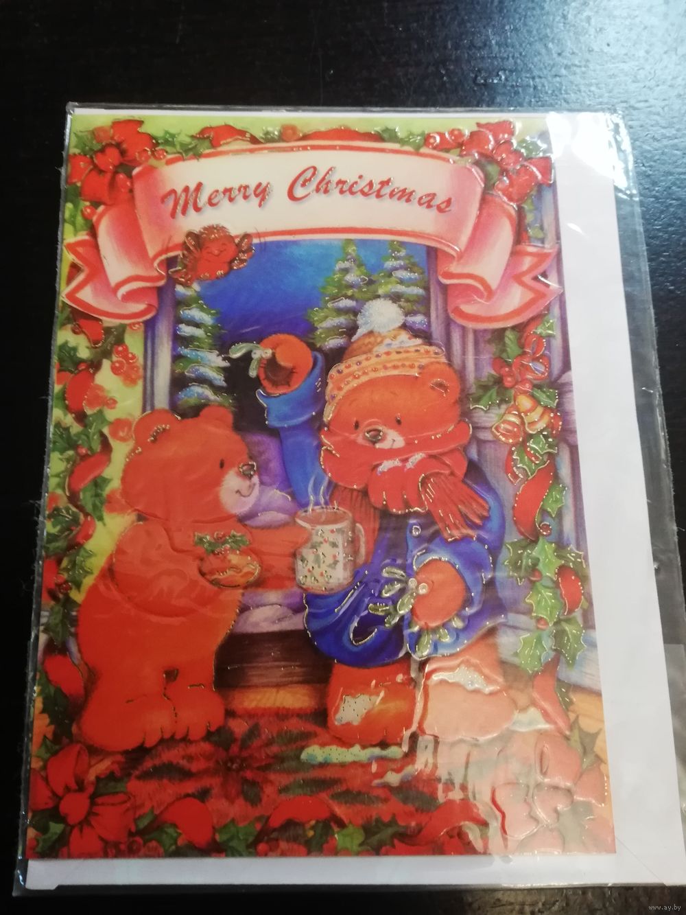 Открытка С Новым годом винтаж S. A. R Сирия с конвертом и наклейками в полиэтиленовой упаковке