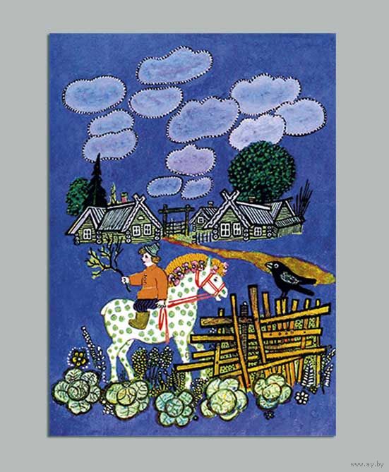 Открытка. Сказка. Ваня простота. Деревня. Белая лошадь. Худож. Васнецов (чистая)