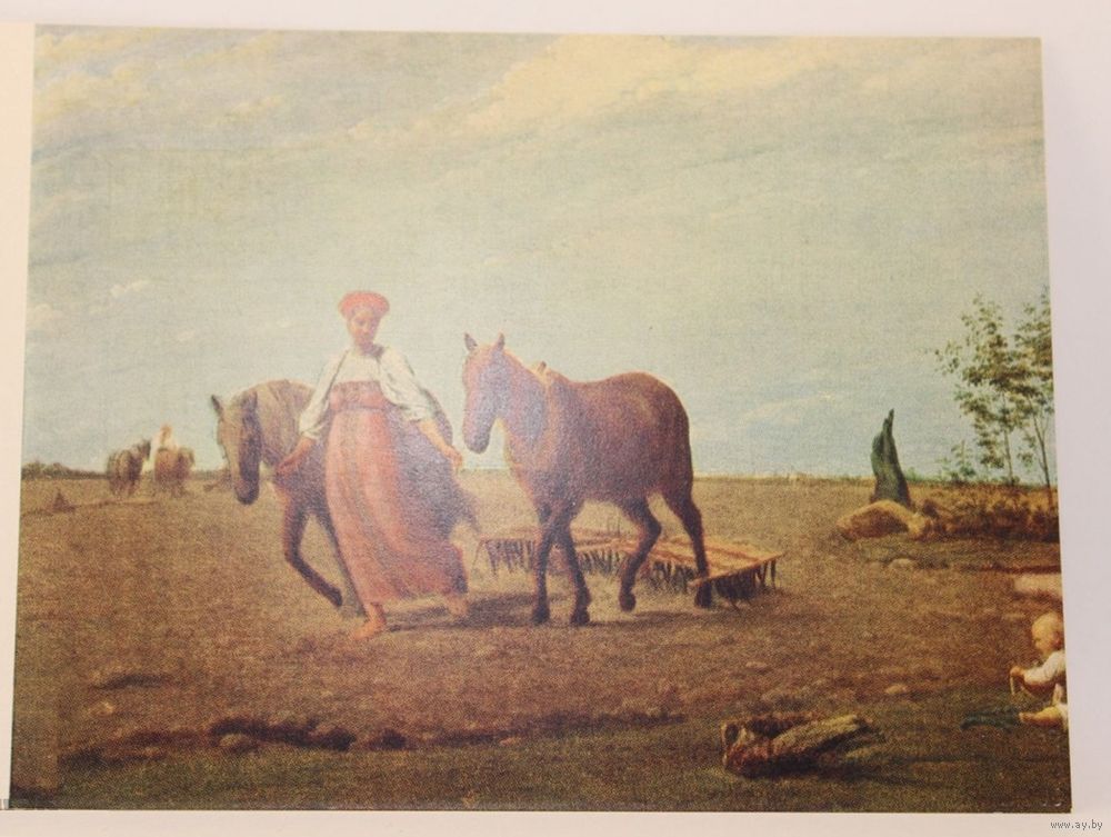Открытка советская, чистая. Живопись СССР. s07. На пашне. А.Г. Васнецов 1966