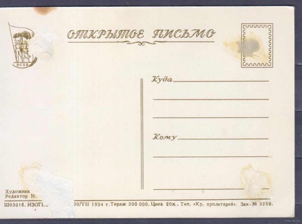 Открытка СССР 1954г. Привет с Всесоюзной сельскохозяйственной выставки. 1
