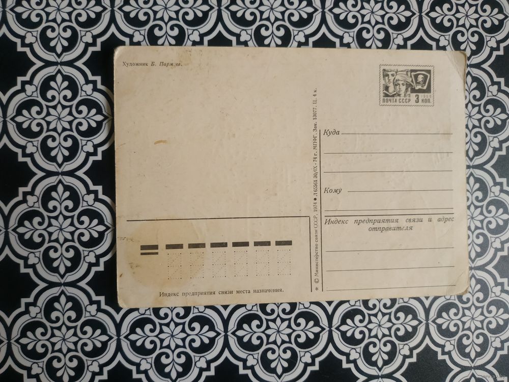 Открытка СССР 1974 год. Чистая. Б.Пармеев. Состояние на скане.