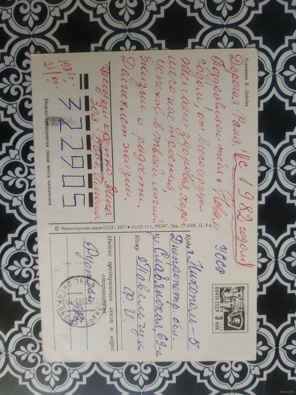 Открытка СССР 1977 год. Прошла почту. В.Лебедев .Состояние на скане.