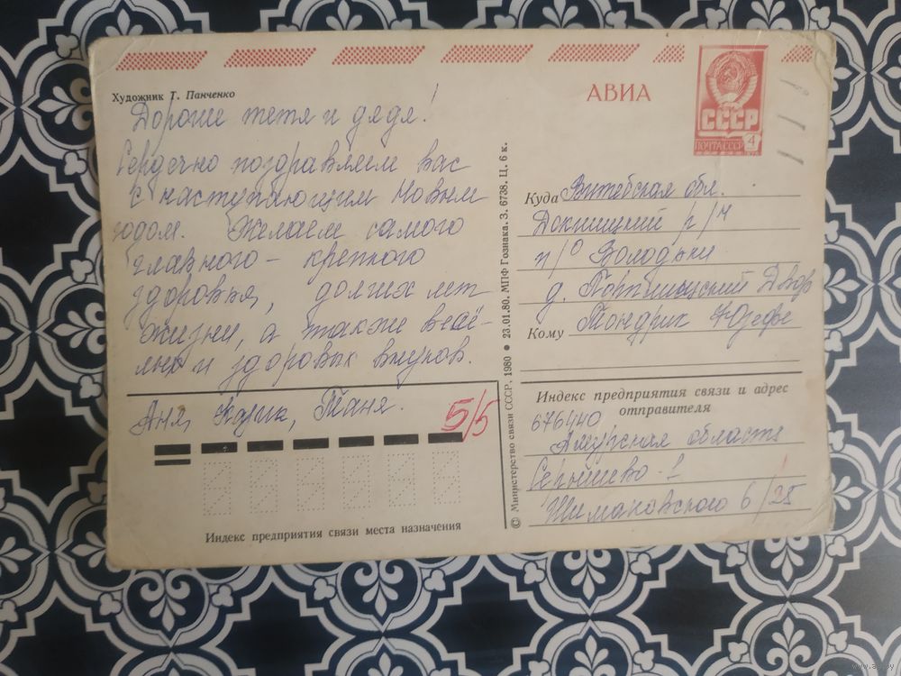 Открытка СССР 1980 год. Прошла почту. Т.Панченко .Состояние на скане.