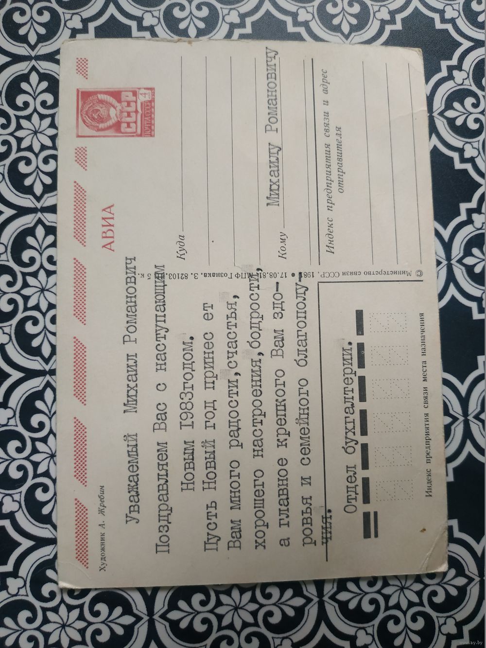 Открытка СССР 1981 год. Подписана. А.Жребин .Состояние на скане.