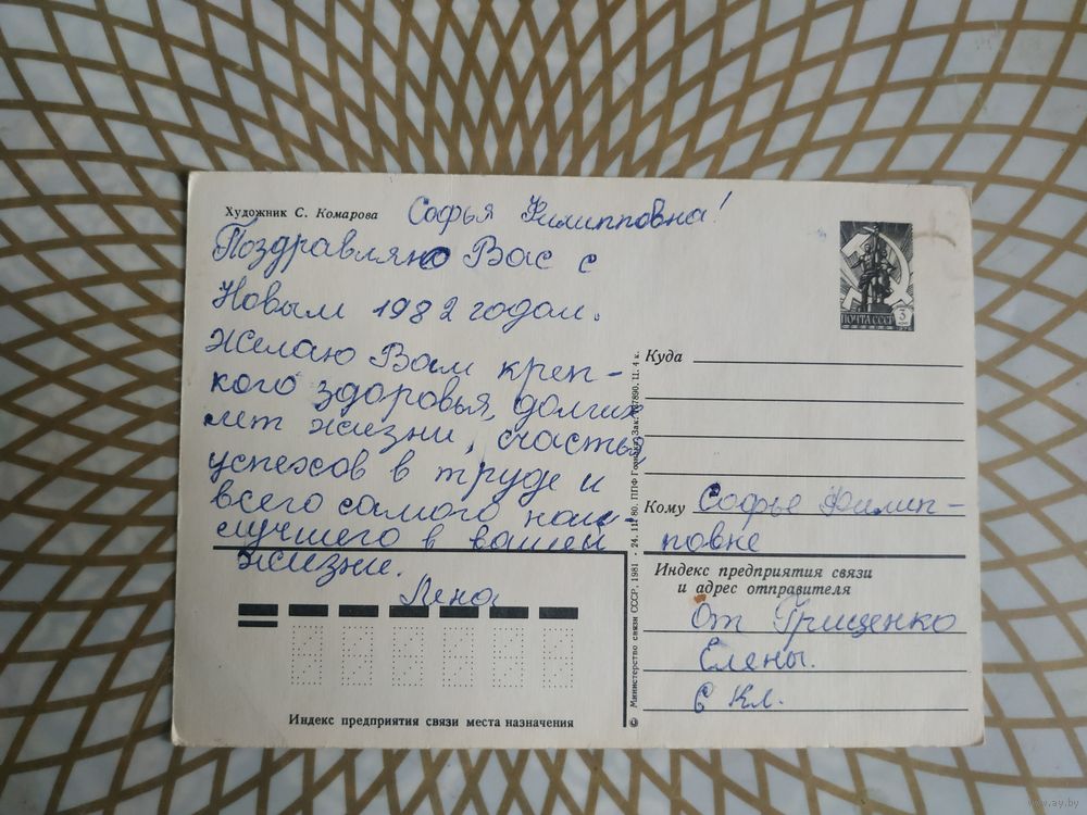 Открытка СССР 1981 год. Подписана . С.Комарова. Состояние на скане.