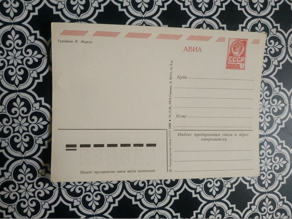 Открытка СССР 1982 год. Чистая. Ф.Марков. Состояние на скане.