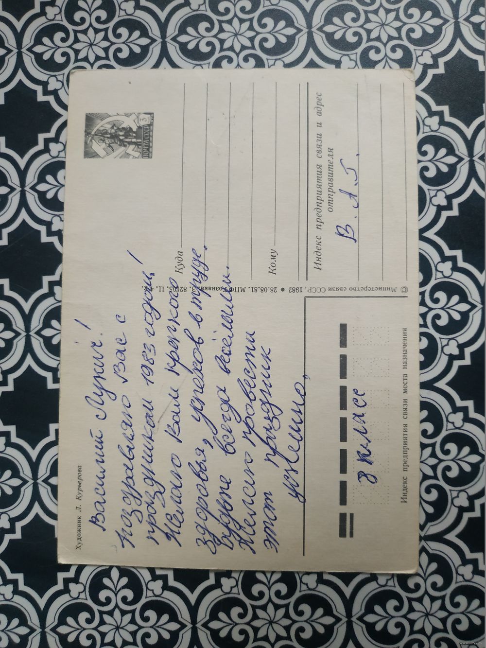 Открытка СССР 1982 год. Подписана . Л.Курьерова. Состояние на скане.Тираж млн.