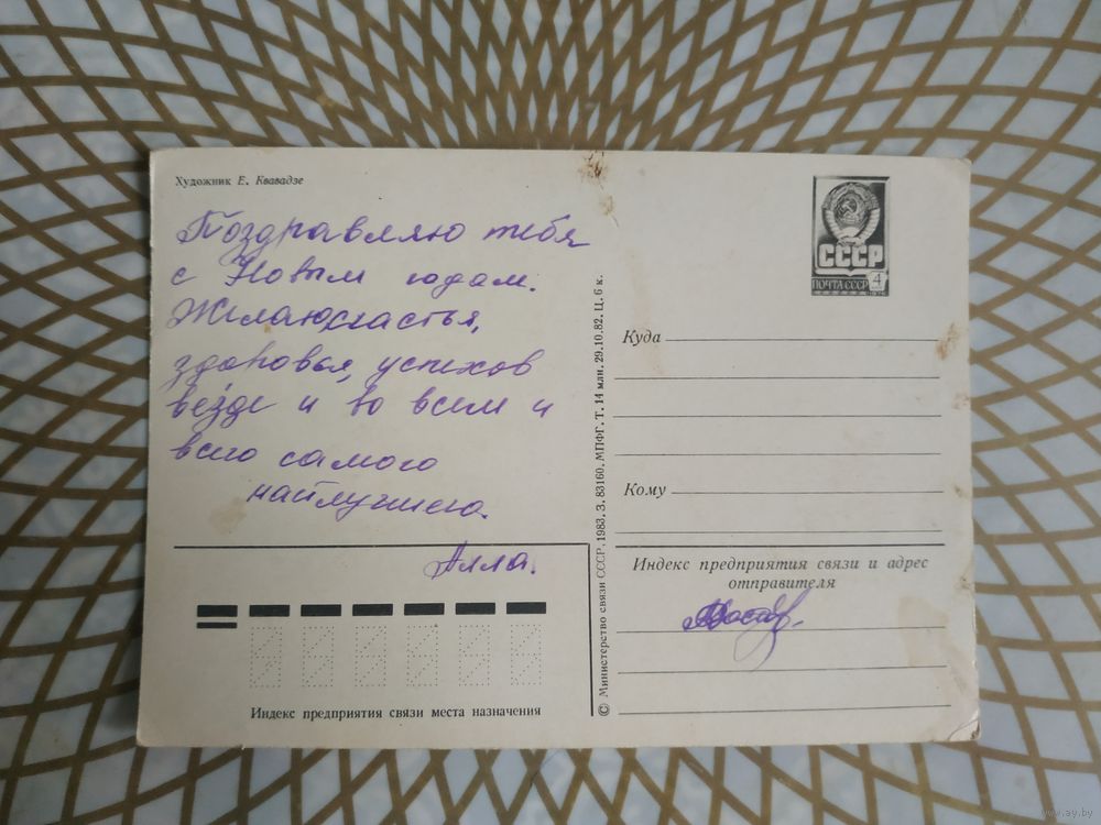 Открытка СССР 1983 год. Подписана . Е.Квавадзе. Состояние на скане. Тираж 14 млн.