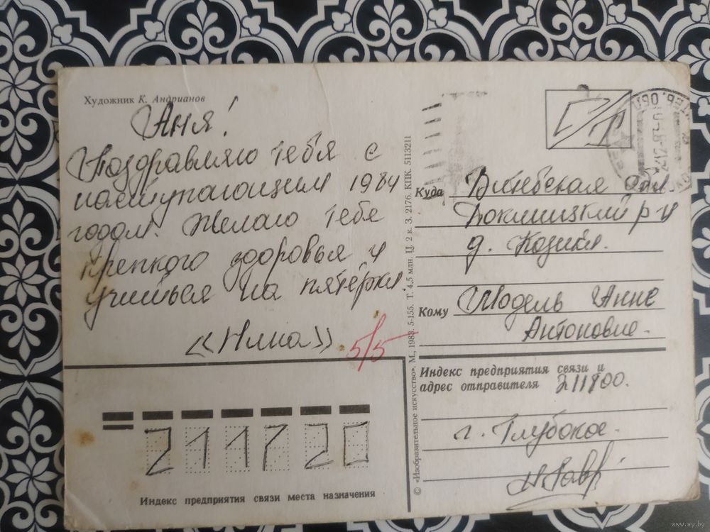 Открытка СССР 1983 год. Прошла почту. К.Андрианов .Состояние на скане.