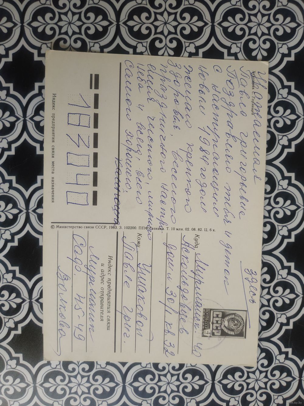 Открытка СССР 1983 год. Прошла почту. С.Горлищев .Состояние на скане.
