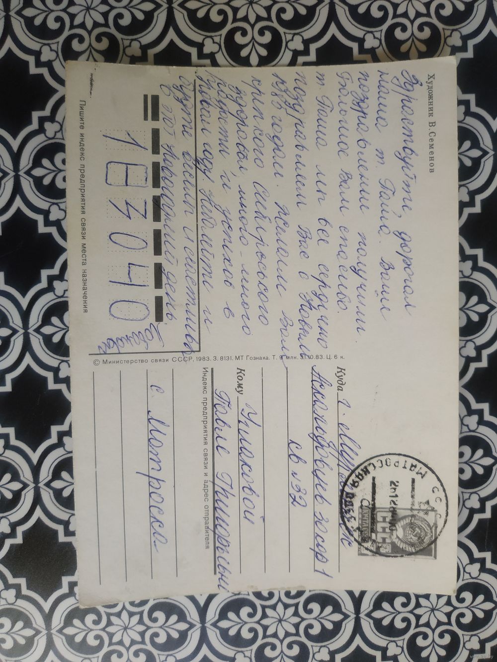 Открытка СССР 1983 год. Прошла почту. В.Семенов .Состояние на скане.