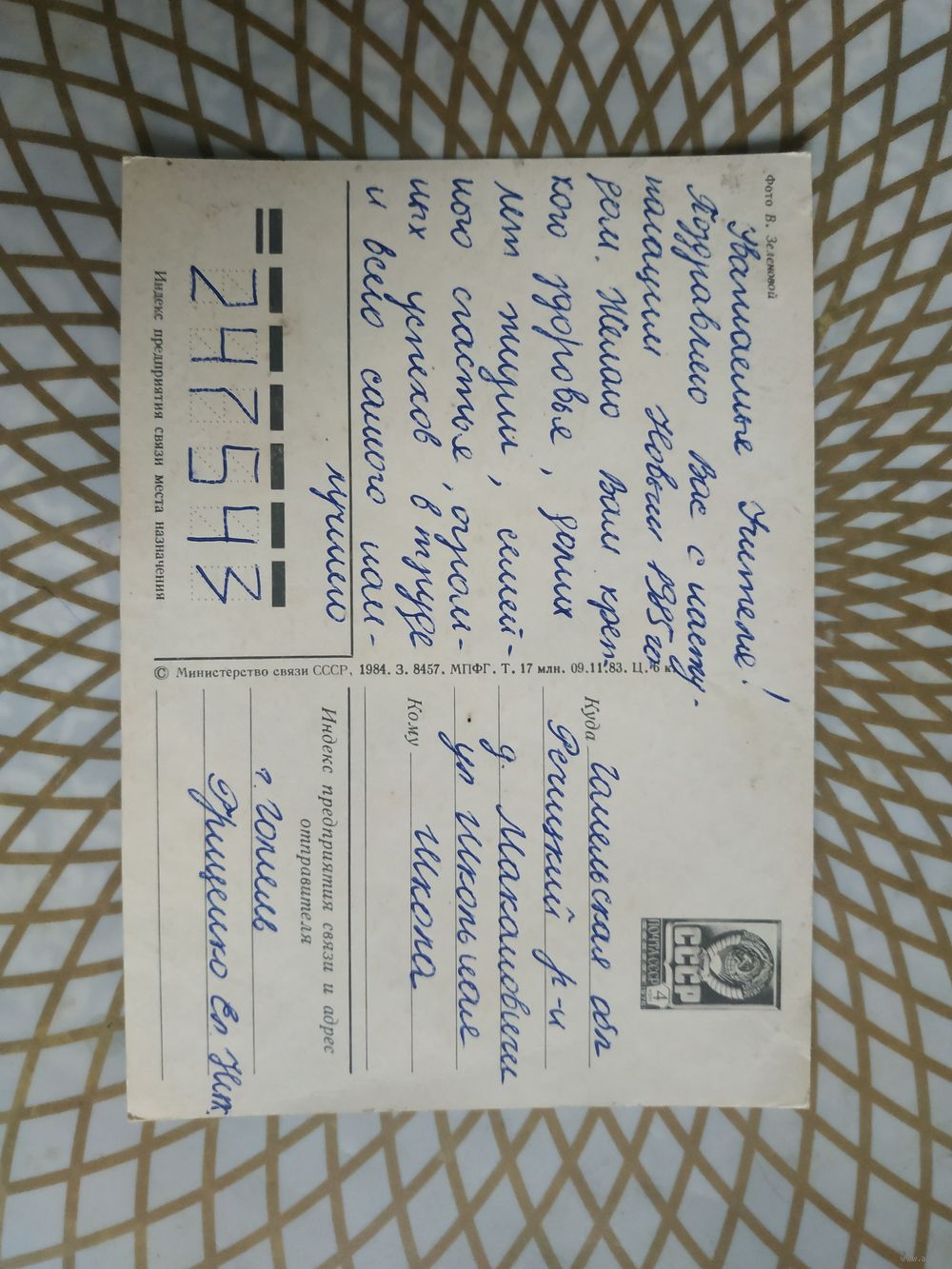 Открытка СССР 1984 год. Подписана . В.Зеленова. Состояние на скане. Тираж 17 млн.