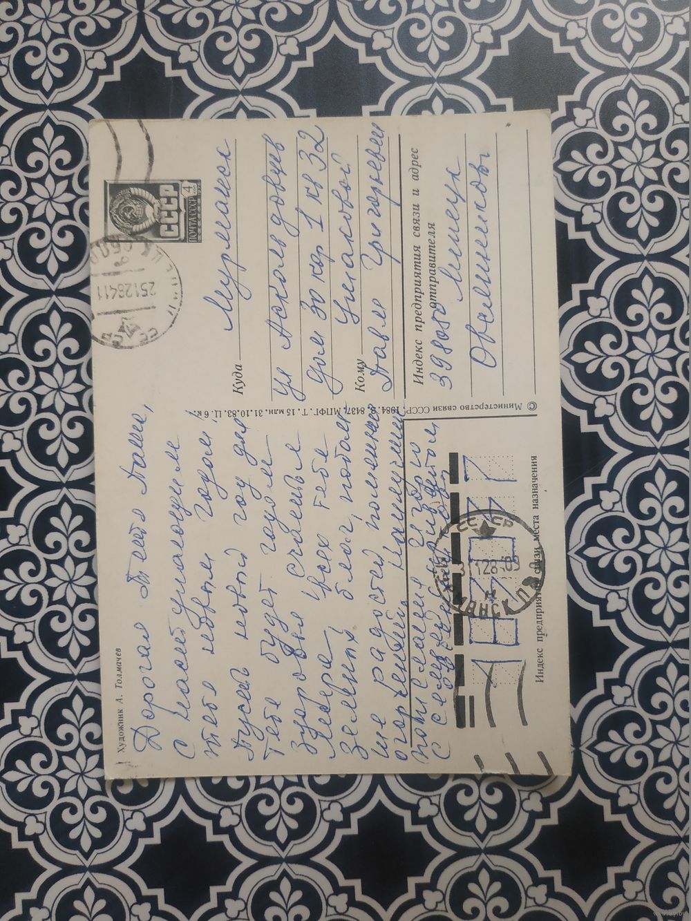 Открытка СССР 1984 год. Прошла почту. А.Толмачев .Состояние на скане.