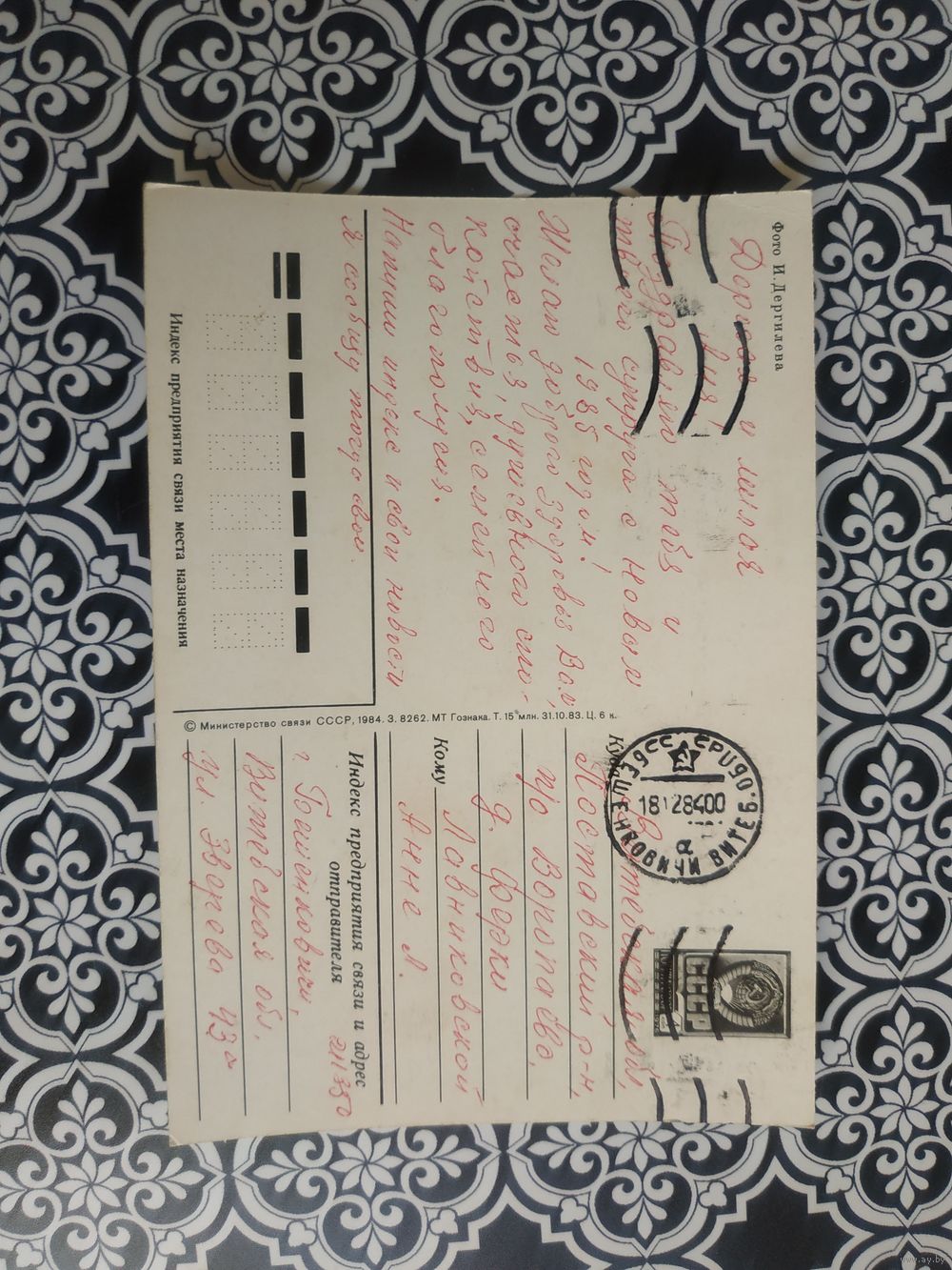 Открытка СССР 1984 год. Прошла почту. И.Дергилев .Состояние на скане.
