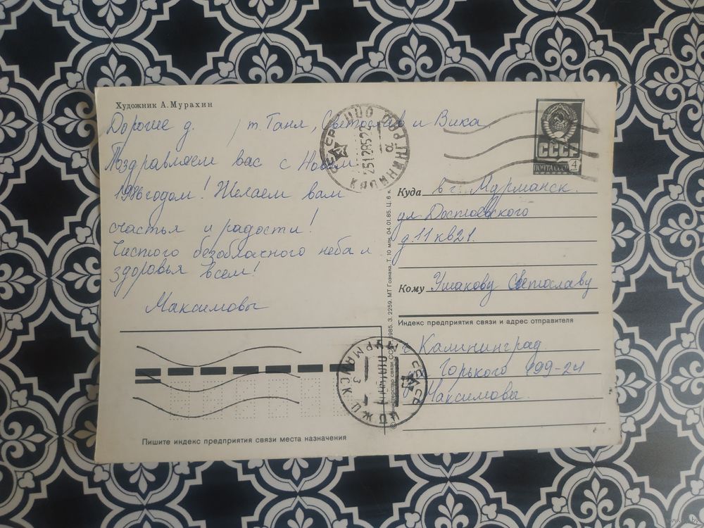 Открытка СССР 1985 год. Прошла почту. А.Мурахин .Состояние на скане.