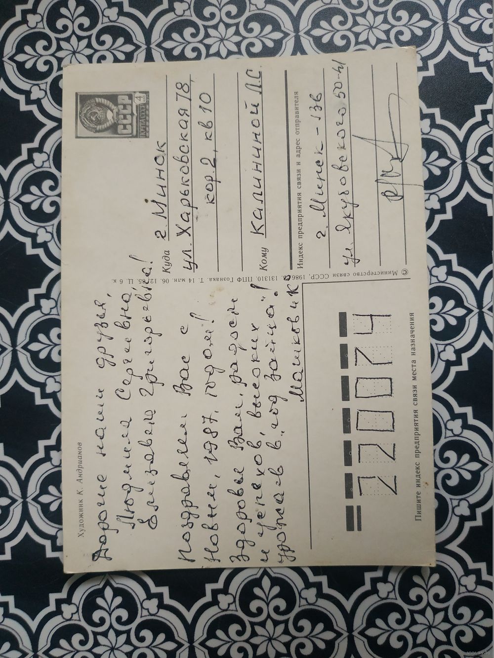Открытка СССР 1986 год. Подписана . К.Андрианов. Состояние на скане.Тираж 14 млн.
