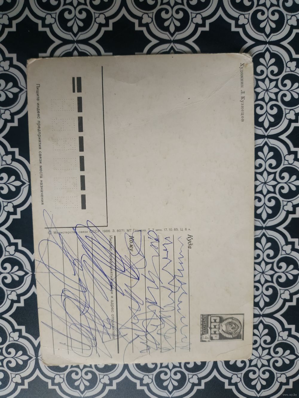 Открытка СССР 1986 год. Подписана. Л.Кузнецов .Состояние на скане. Тираж 7 млн.