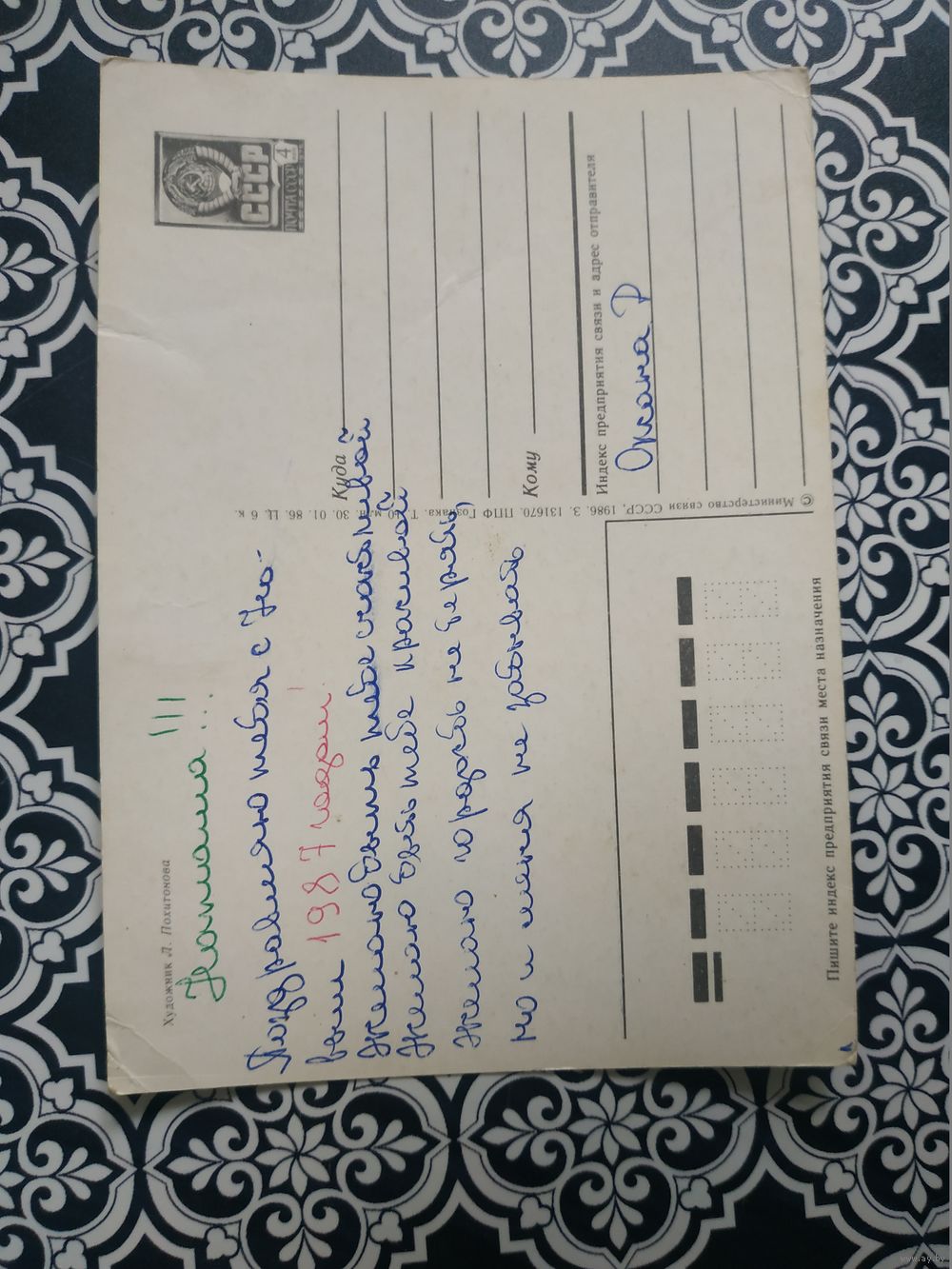 Открытка СССР 1986 год. Подписана. Л.Похитонова .Состояние на скане.Тираж 1 млн.