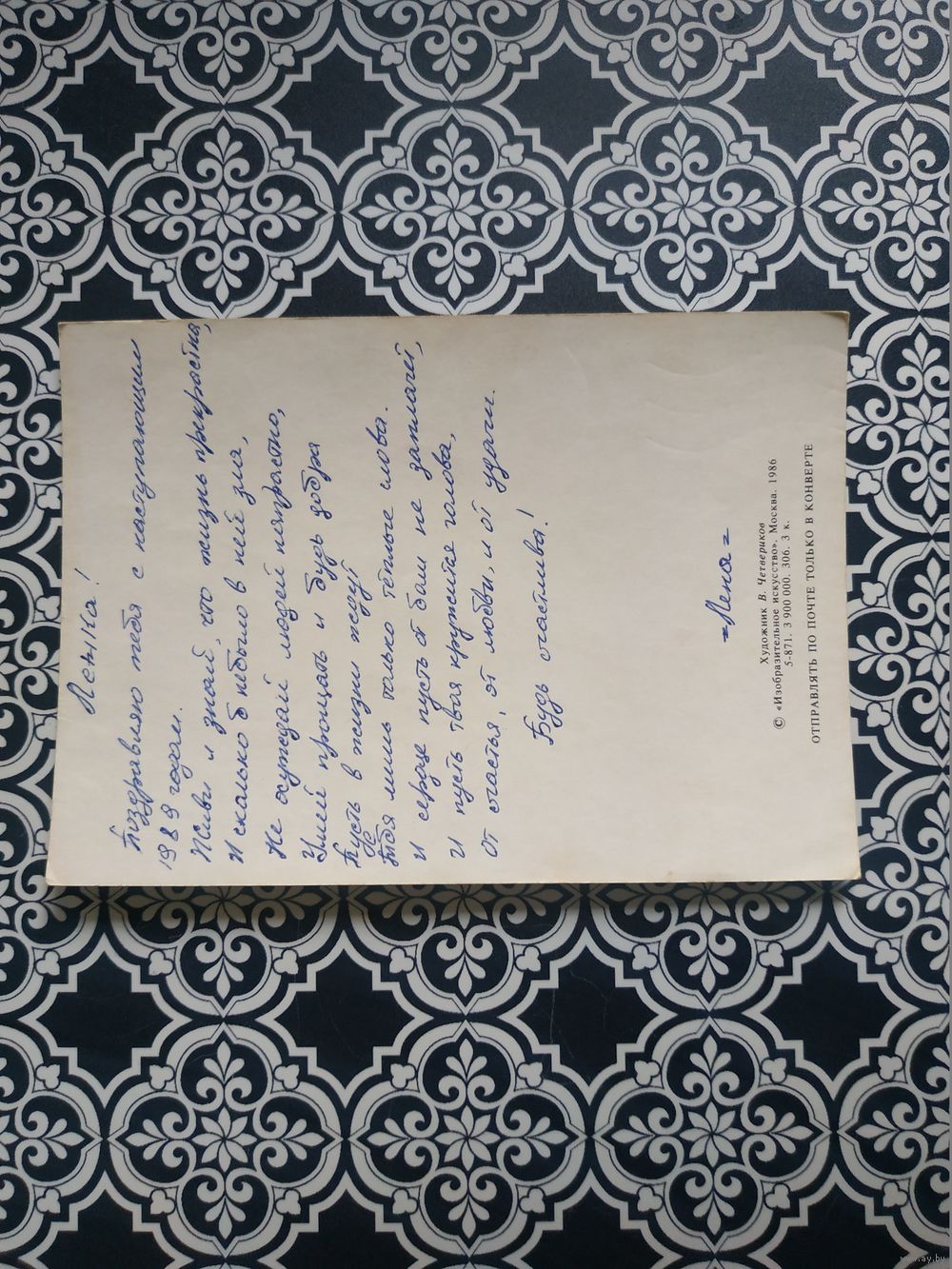 Открытка СССР 1986 год. Подписана. В.Четвериков .Состояние на скане.Тираж 3 900 000.