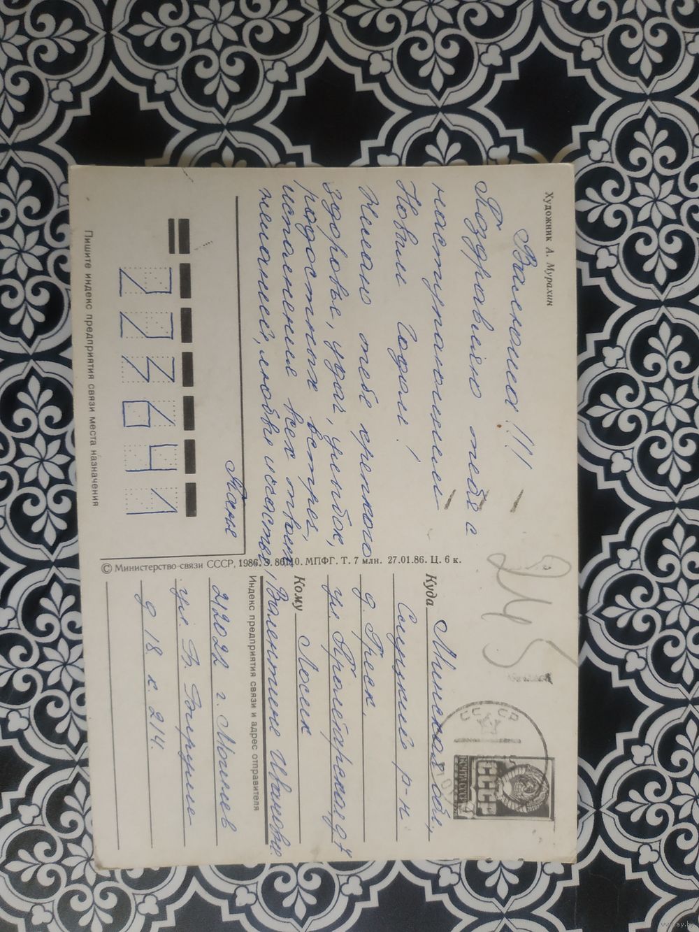 Открытка СССР 1986 год. Прошла почту. А.Мурахин .Состояние на скане.
