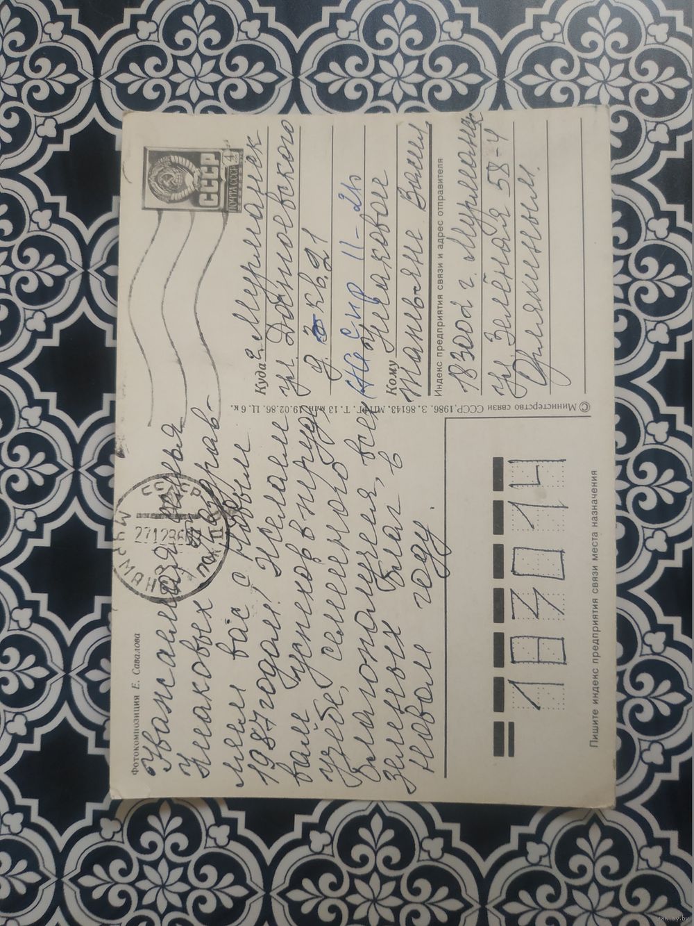 Открытка СССР 1986 год. Прошла почту. Е.Савалов .Состояние на скане.