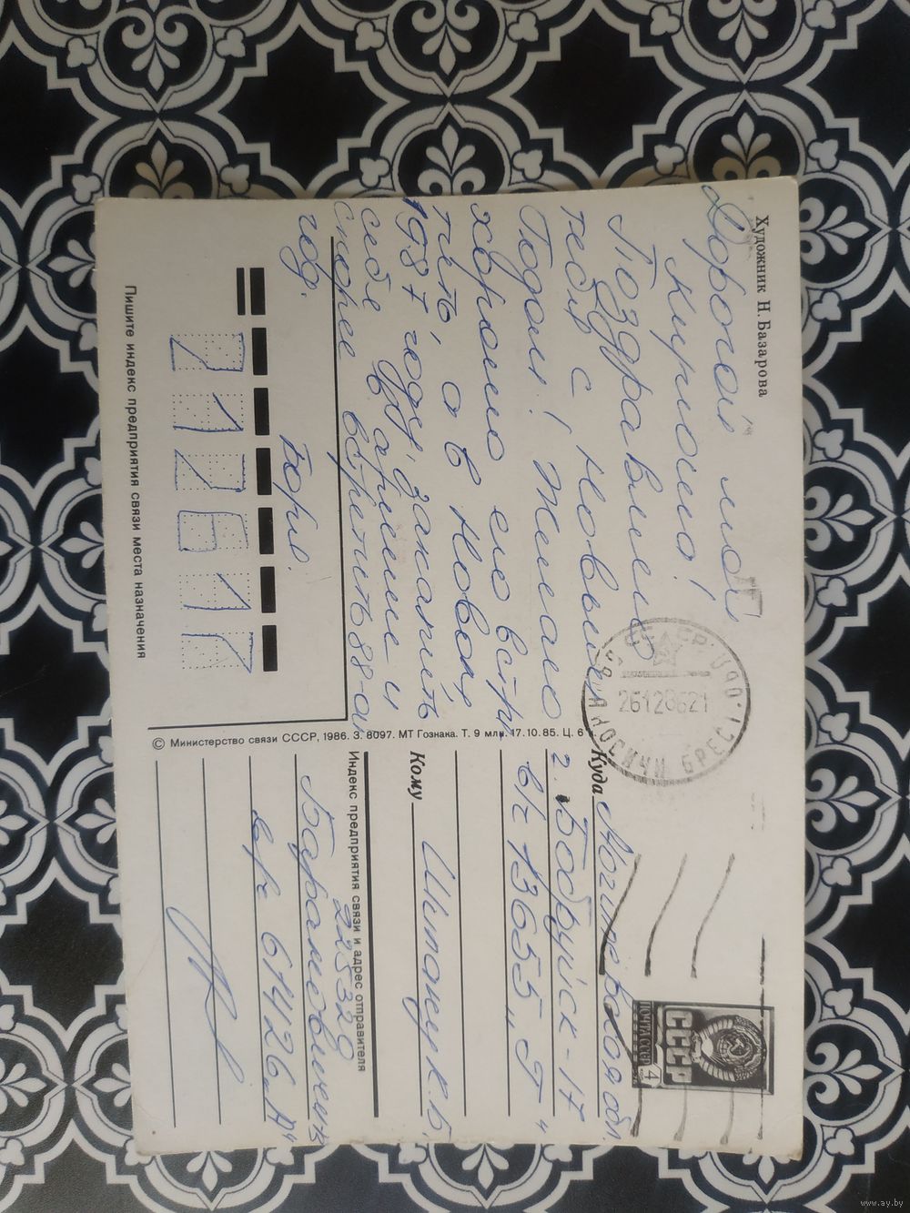 Открытка СССР 1986 год. Прошла почту. Н.Базарова .Состояние на скане.