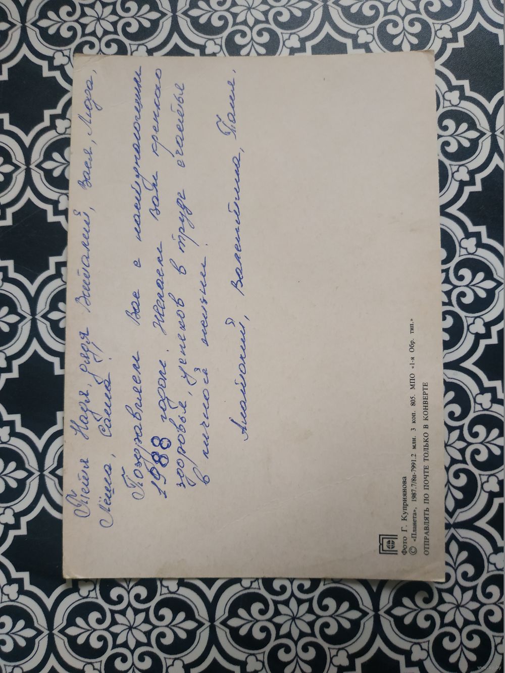 Открытка СССР 1987 год. Подписана . Г.Куприянов. Состояние на скане.Тираж 2 млн.