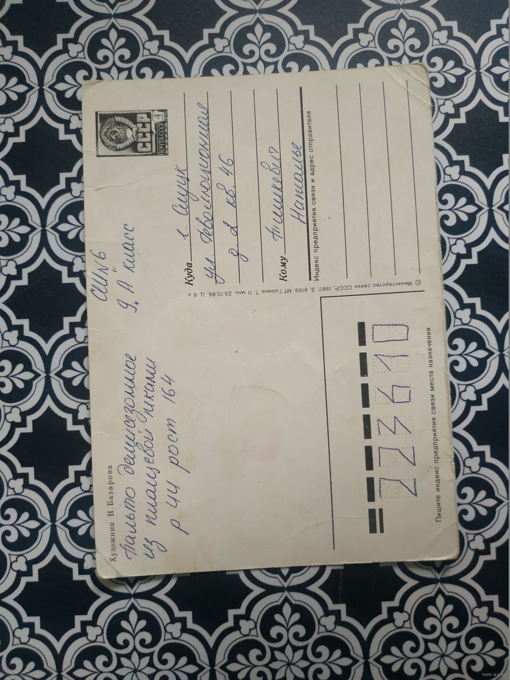 Открытка СССР 1987 год. Подписана. Н.Базарова .Состояние на скане.Тираж11 млн.