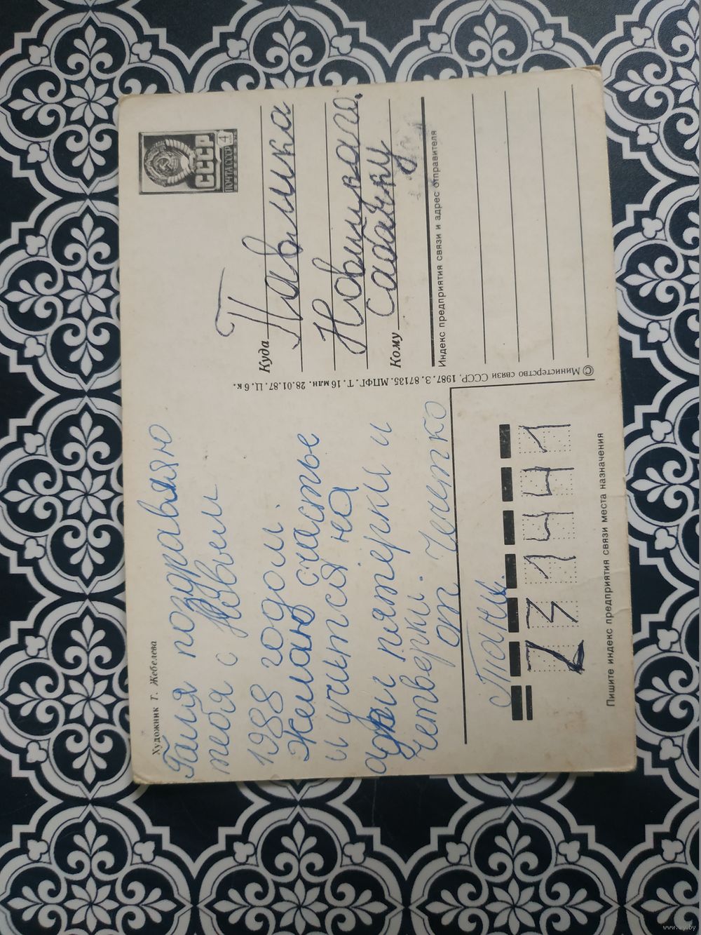 Открытка СССР 1987 год. Подписана . Т.Жебелева. Состояние на скане.Тираж 16 млн.