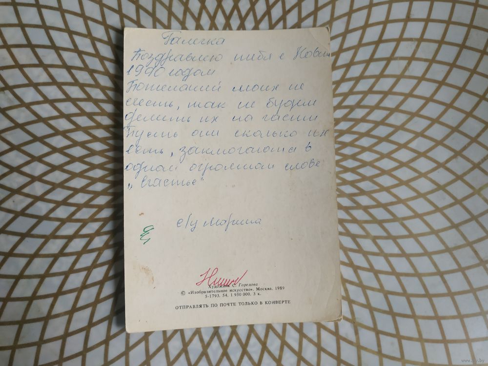 Открытка СССР 1989 год. Подписана . Б.Пармеев. Состояние на скане. Тираж 1 950 000.