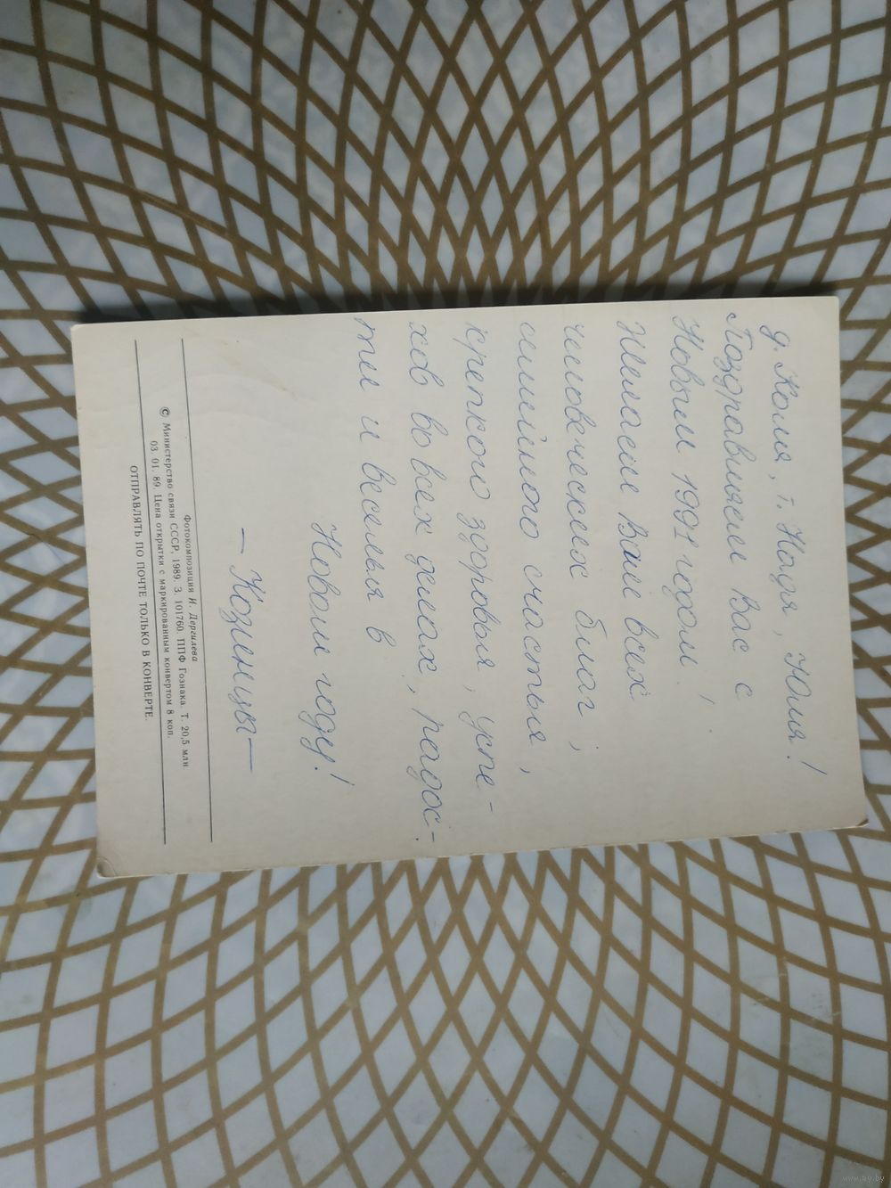 Открытка СССР 1989 год. Подписана . И.Дергилев. Состояние на скане. Тираж 20,5 млн.