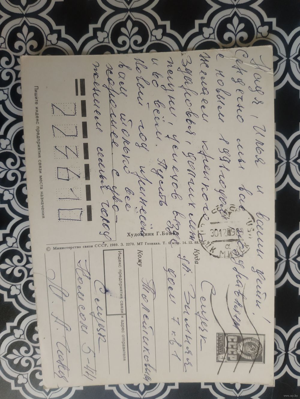 Открытка СССР 1989 год. Прошла почту. Г.Бойко .Состояние на скане.