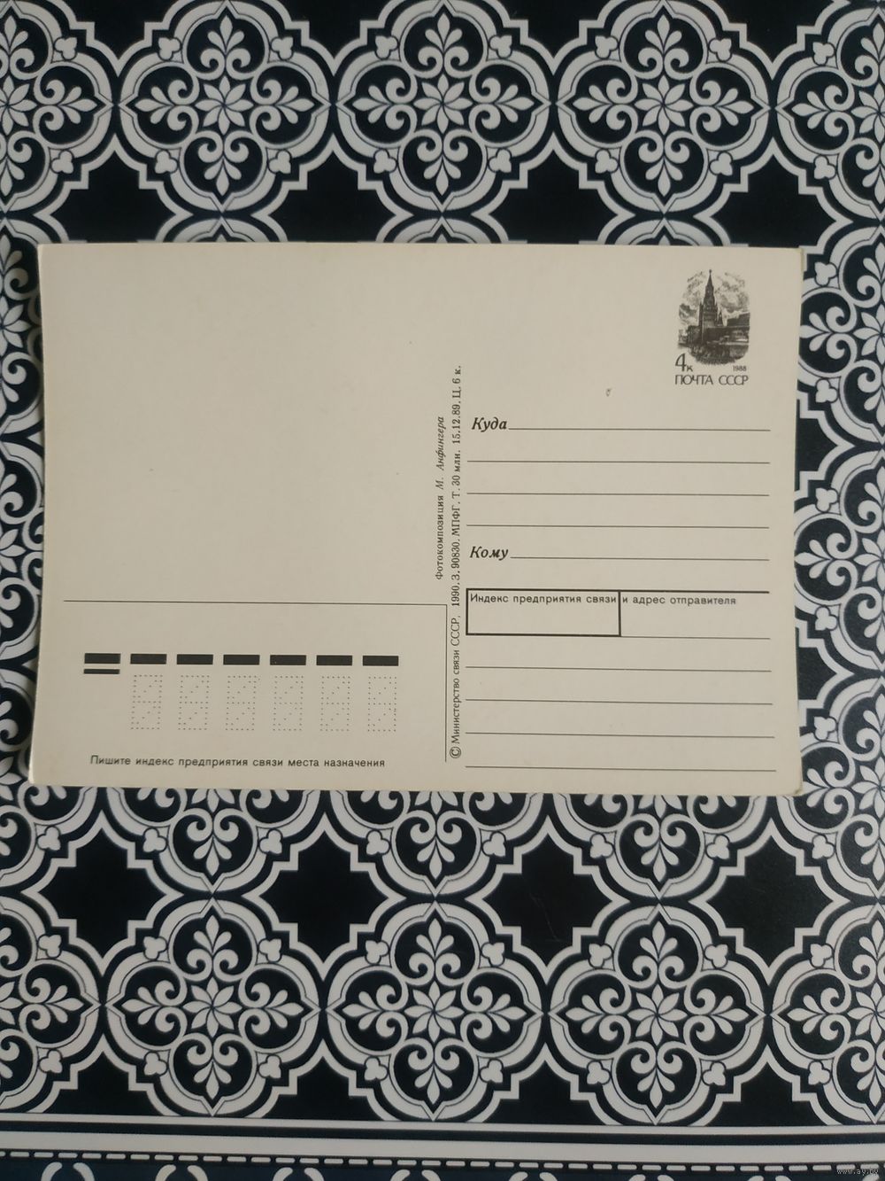 Открытка СССР 1990 год. Чистая. М.Анфингер. Состояние на скане.