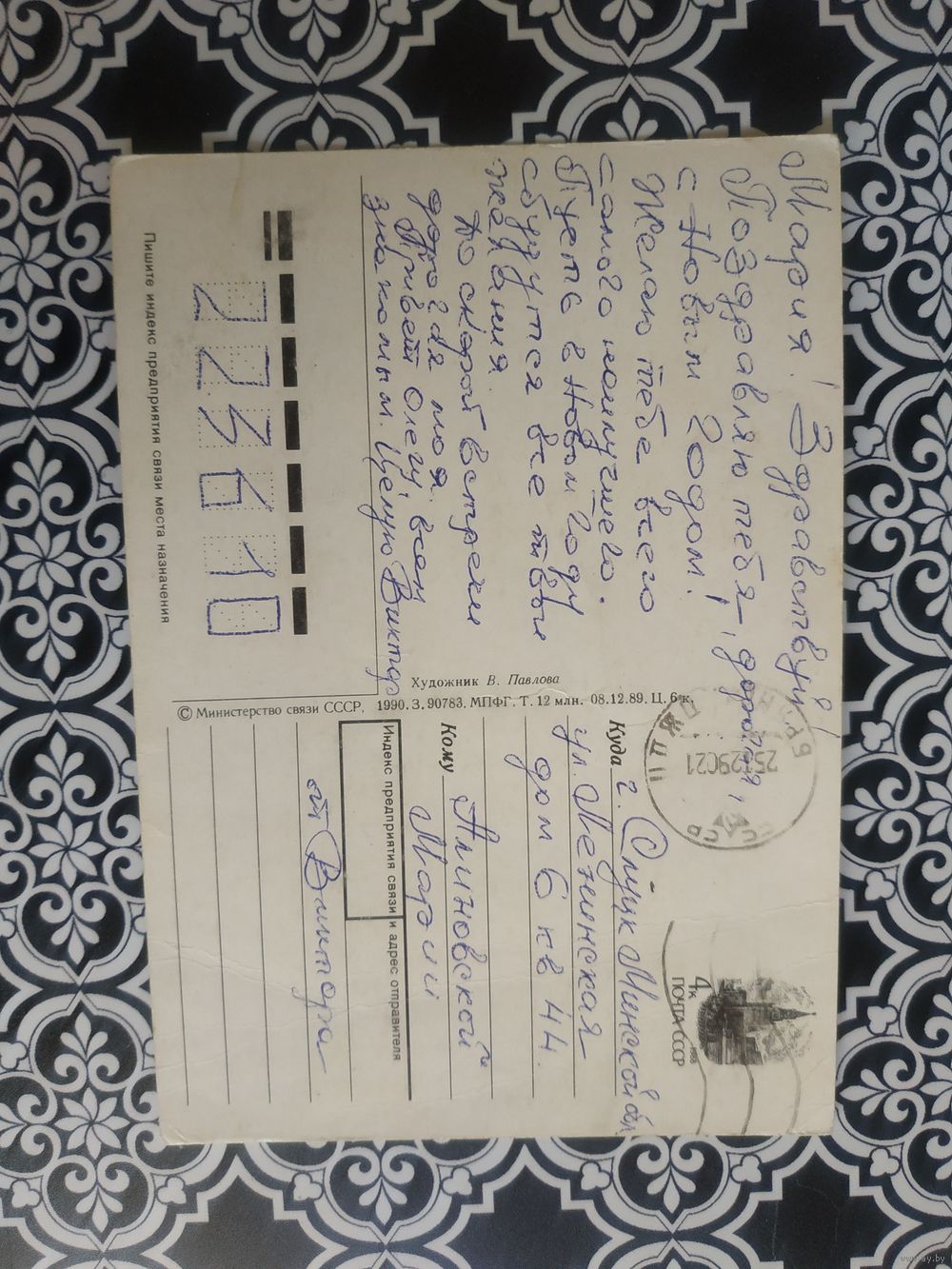 Открытка СССР 1990 год. Прошла почту. В.Павлова .Состояние на скане.